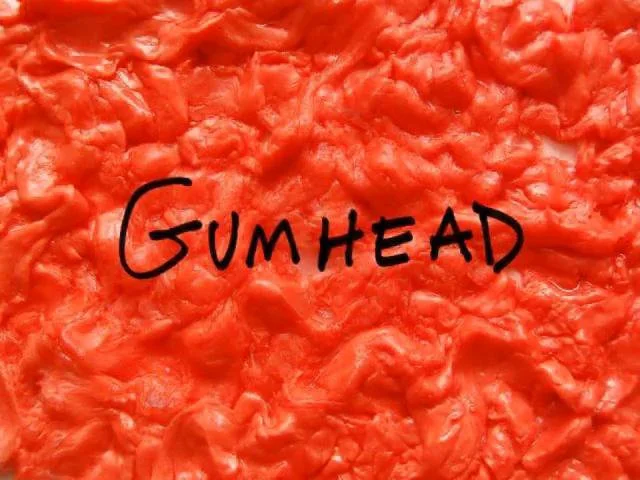 Gumhead Spit it out! Yucky intestines or gum, hard to tell, and didn’t your mother tell you not to stick that wad on the wall! A look at the abstract qualities of brightly colored chewing gum while examining one of the most basic life questions, How come I’m Gumhead?